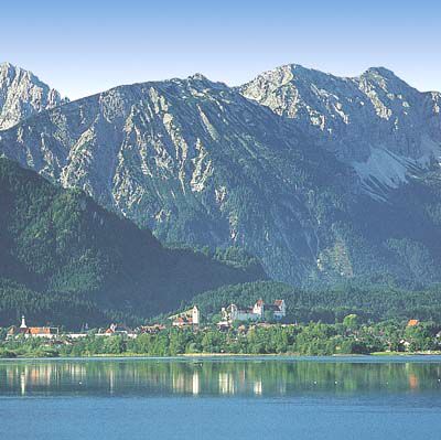 The mountain on the left of Schwangau is called TEGELBERG - the top can be reached comfortably by cable car.